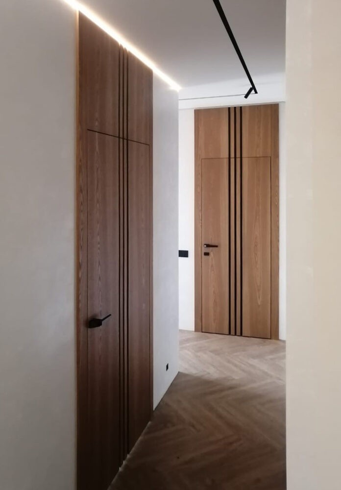 Увеличение проема 1п Дверь ЛОФТ 49250 руб. Полотно шпон на амбарном механизме 56 900 руб Лофт классика в шпоне