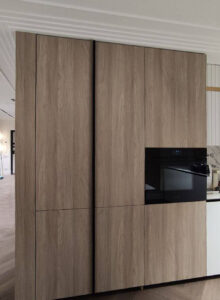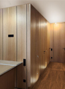 Наиболее популярным материалом для стеновых панелей является натуральный шпон дуба или ясеня, покрытый прозрачным или слегка тонированным лаком. Также возможен вариант индивидуального подбора цвета.